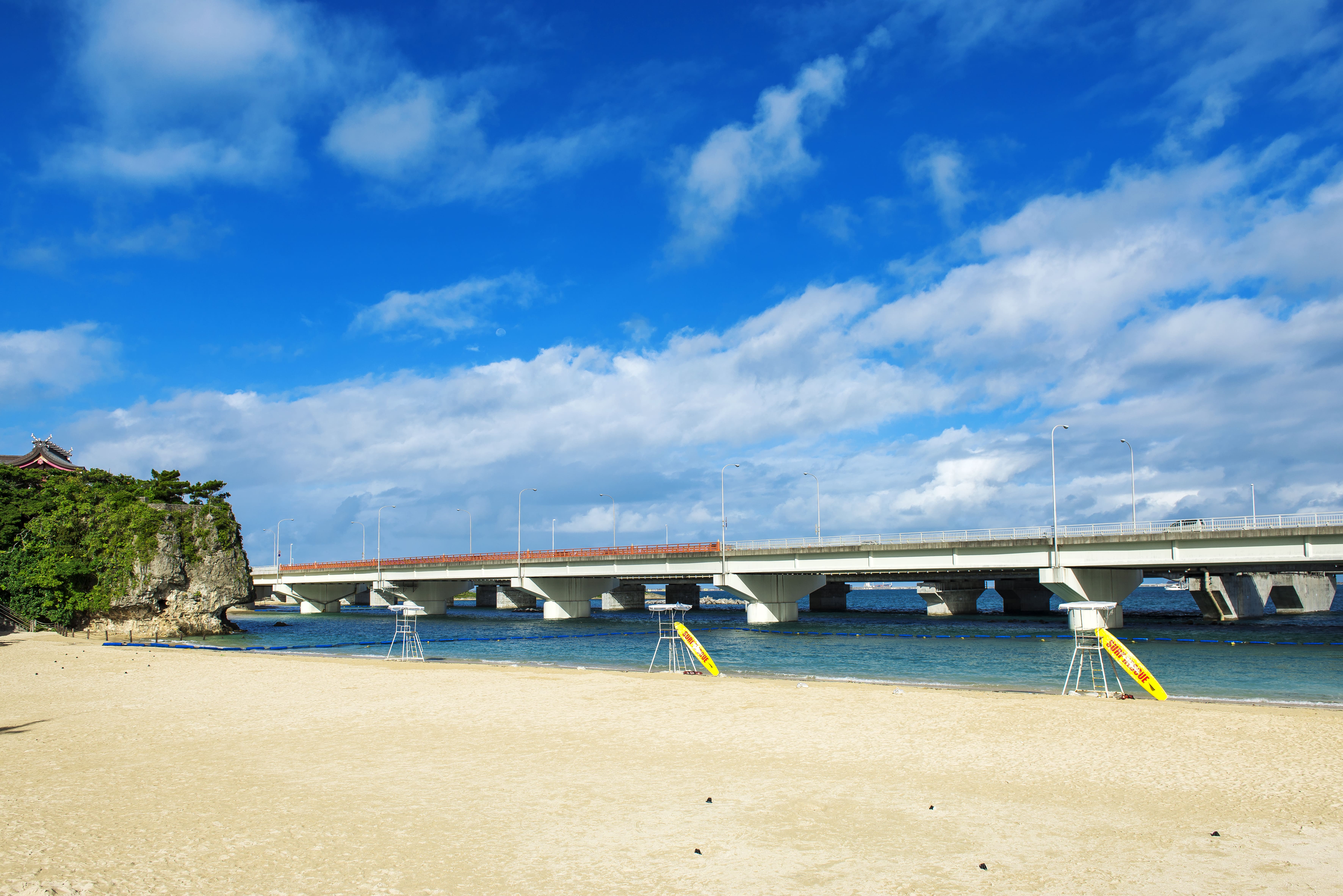 那覇空港まで車で約15分の場所にあるので、「帰る前にもうひと泳ぎしたい」というときに立ち寄れるタウン派ビーチ。更衣室・ロッカーなどの設備が整い、泳いだあとにそのまま街へと出かけることもできて便利。ここは那覇市唯一のビーチで、健康のために朝・夕に泳ぐ人や子ども連れで海を楽しむ家族など市民の憩いの場所にもなっています。波の上うみそら公園では海に囲まれた開放的な空間でバーベキューも楽しむことができます。 ビーチは若狭側、辻側2つに分かれており、若狭側は若狭海浜公園と隣接、辻側はファーストフードなどの飲食店があり、夜景もきれいです。ダイビング・シュノーケル専用ビーチもあり熱帯魚に出会える人気スポットです。(ダイビング・シュノーケル専用ビーチは一般遊泳禁止で、ガイドダイバーの同行が必須です。)